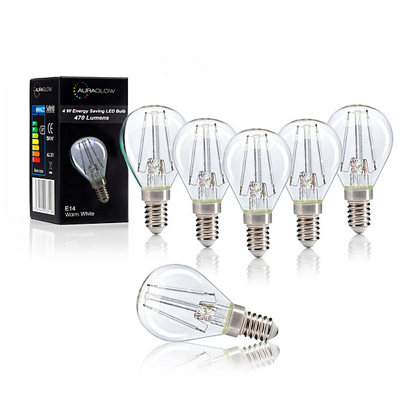 Auraglow 4w G45 Golf Ball Filament LED Vintage Light Bulb – E14 – WARM WHITE – Pack of 6