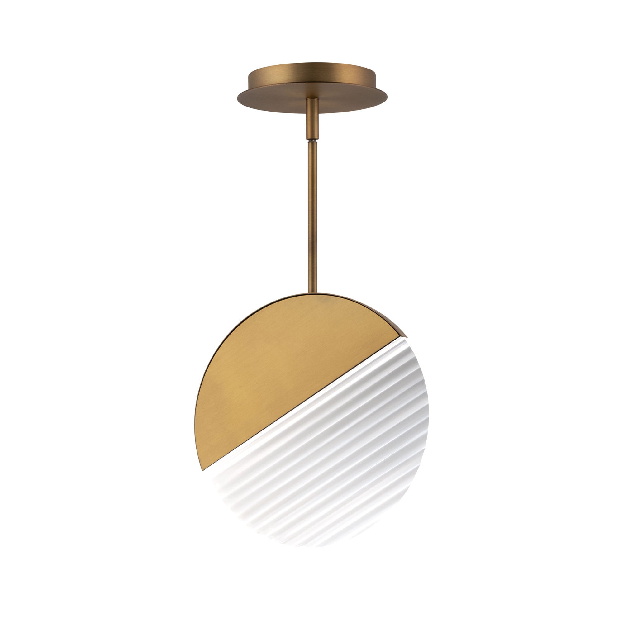 The introduction of gallery flavor ratchets up the decadence of a light fixture you’ll want to consider. A blend of sleek aluminum and ribbed acrylic allows the Crescent LED Pendant Light from dweLED to join artisan-inspired décor while sending soft, energy-efficient illumination around a modern space. Take advantage of dimming features with separately purchased compatible dimming components.
