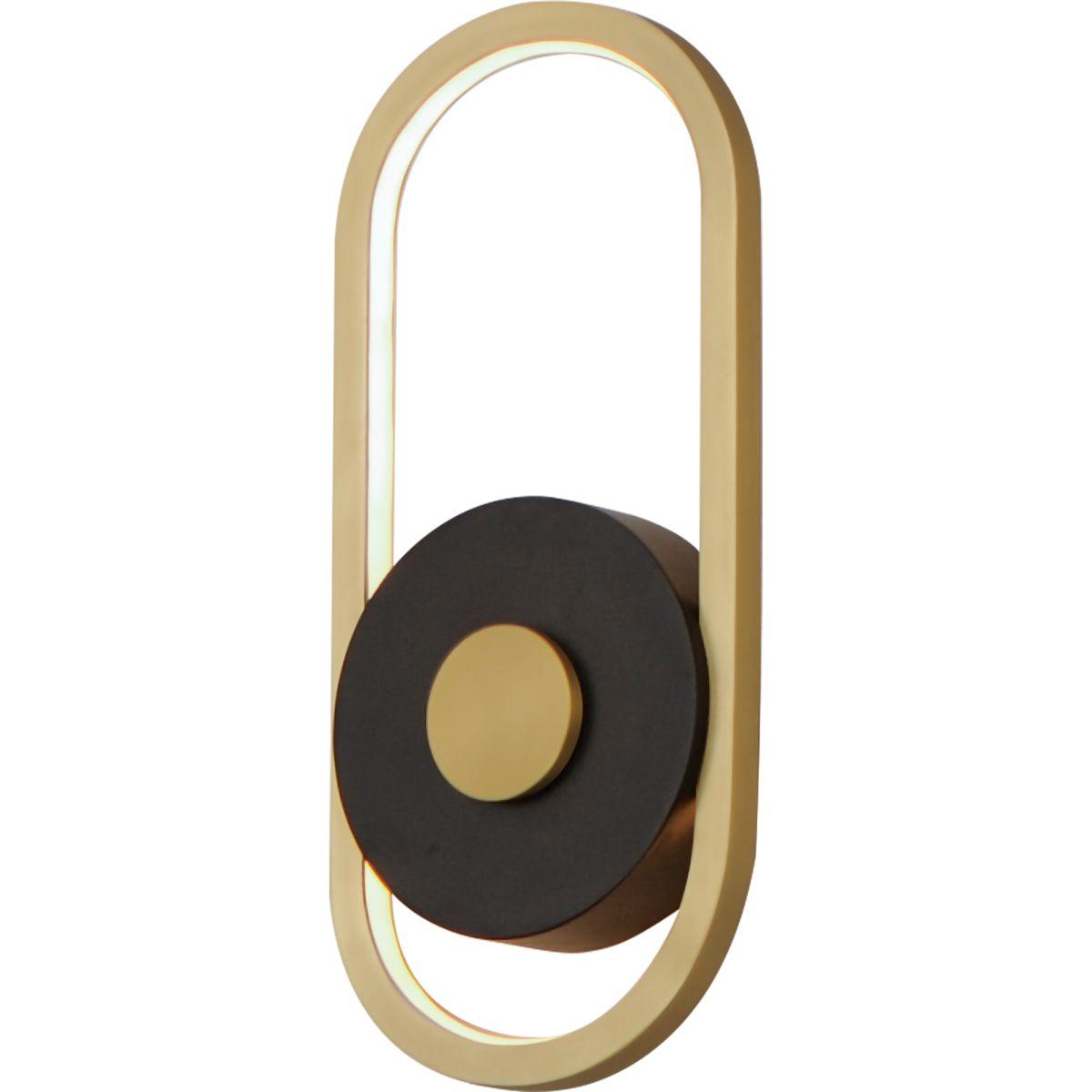 This E42102-BKGLD Gravity outdoor wall flush mount by ET2 Lighting features a modern style with a perfect oval shape. An elliptical shape in gold finish is illuminated by dedicated LED lighting and secured to a disc in contrasting black finish making a modern silhouette rated for outdoor applications. This E42102-BKGLD outdoor wall flush mount uses an input voltage of 120V and measures 6 inches in width. LED fixtures are more energy efficient and last much longer than traditional incadescent versions. Exterior wall lights can be placed next to a porch, in front of a garage, at a side door, or on a rear wall.