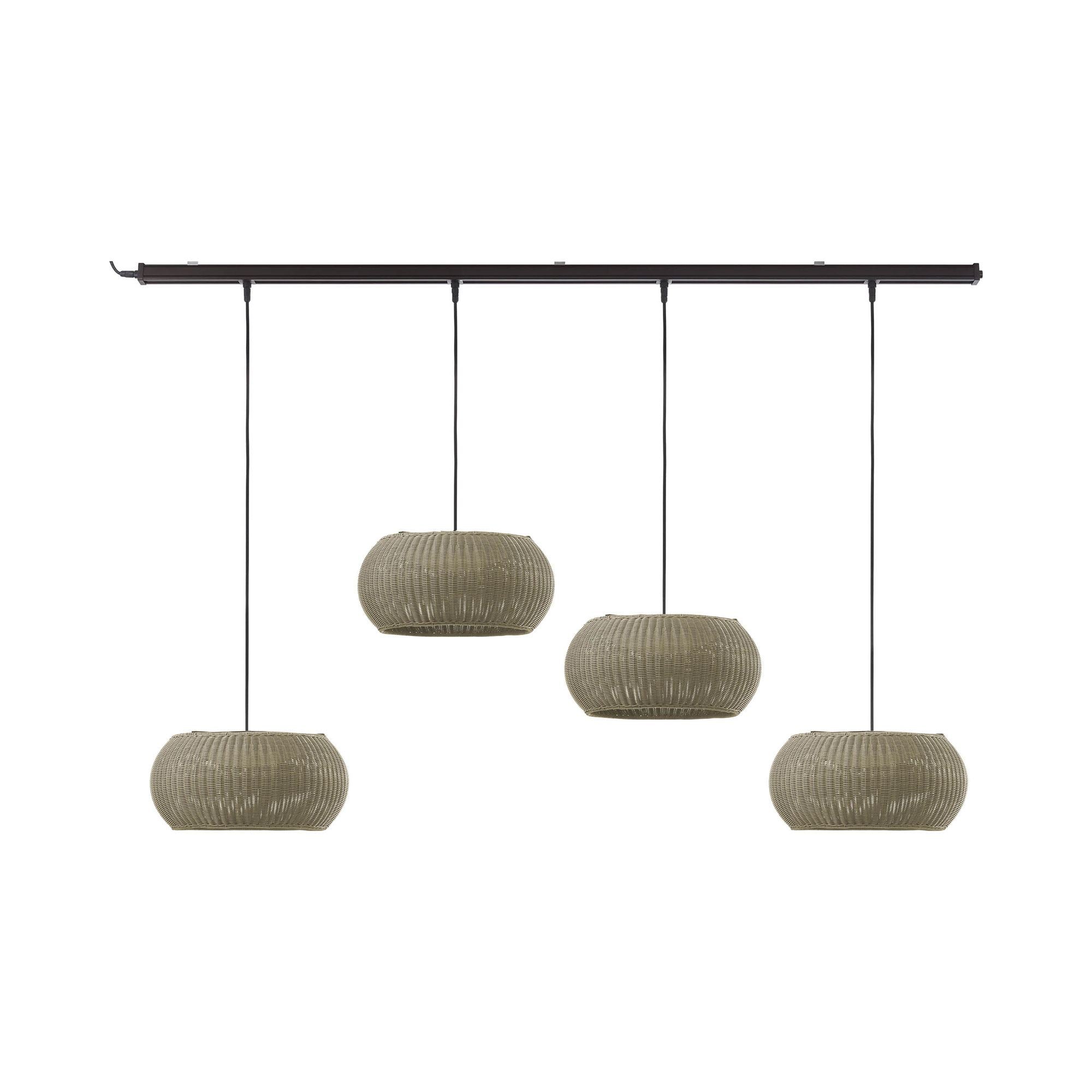 The Outrack Perris Outdoor LED Pendant Light from Bover delivers a dramatic silhouette not to be minimized. Embrace coastal and exotic texture with a light featuring woven materials as a boho-inspired shade. Perfect for indoor and outdoor use, its inclusion as part of a track profiling system ensures even, easy installation.