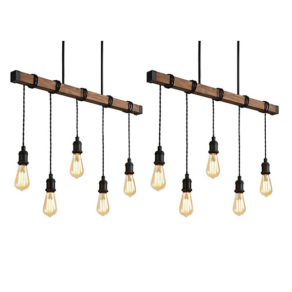 Ideal for a kitchen or dining area these wooden 5 light pendant bars can be adjusted during installation to suit your needs. Suitable for all rooms, bedrooms, conservatorys, dining rooms, hallways, kitchens, living rooms & study. 140 cm height x 80 cm width x 10 cm depth. This product is suitable for use with LED bulbs and when paired with a dimmable bulb can be dimmed. This product is compatible with most domestic smart light bulbs. Always check bulb length against product dimensions to confirm suitability. 10 x 13W Max LED E27 ES (required). Class II – Double insulated for your safety. We take pride in supporting our customers and work hard to ensure you always receive a first class service.